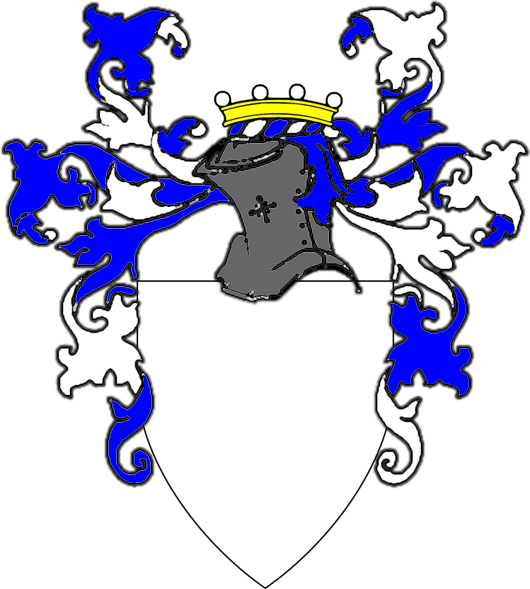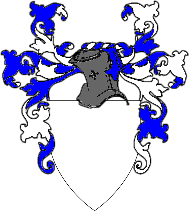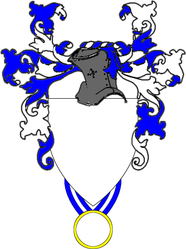 Achievements of Arms for Grant-level awards and Orders are more elaborate. The general convention is the recipient has a helm and/or mantling displayed as part of the Achievement of Arms. Otherwise the method for decpicting the Achievement of Arms is the same as the Award of Arms-level awards and Orders. Mantling should be colored alternating between the two major contrasting tinctures of the recipient's armory. The helm may be shown facing to the side or facing forward. When presenting a Court Barony with Grant of Arms (i.e. as is typically awarded when a Territorial Baron or Baroness retires), The Baronial coronet may be placed around the base of the helm or atop the torse of the mantling. The Traceable Heraldic Art project site has a nice sample set of helms and mantling for Achievements of Arms |