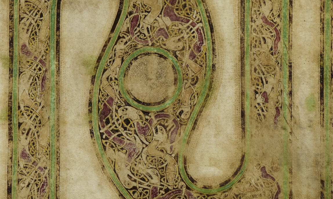 in which knotwork completely fills the interior of letters and spiral patterns unfurl at
