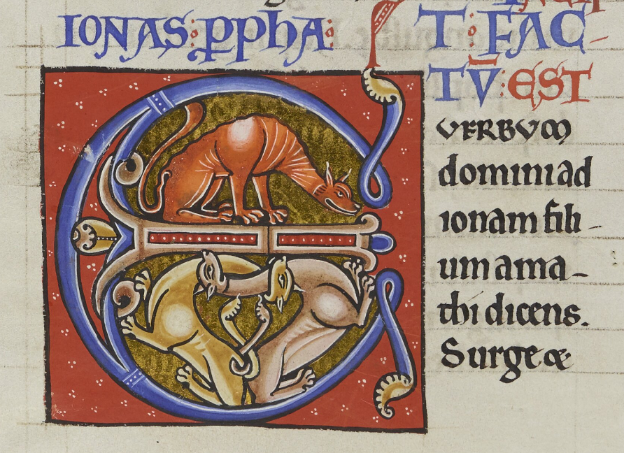 Presumably this type of illumination is rare. That beast-head looks like a direct descendant of the chancel arch at Kilpeck.