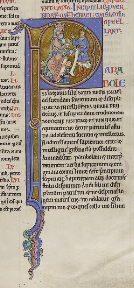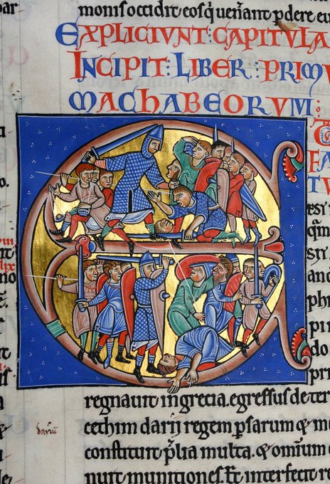 Illuminated "E" from Maccabees in the Du Puiset Bible