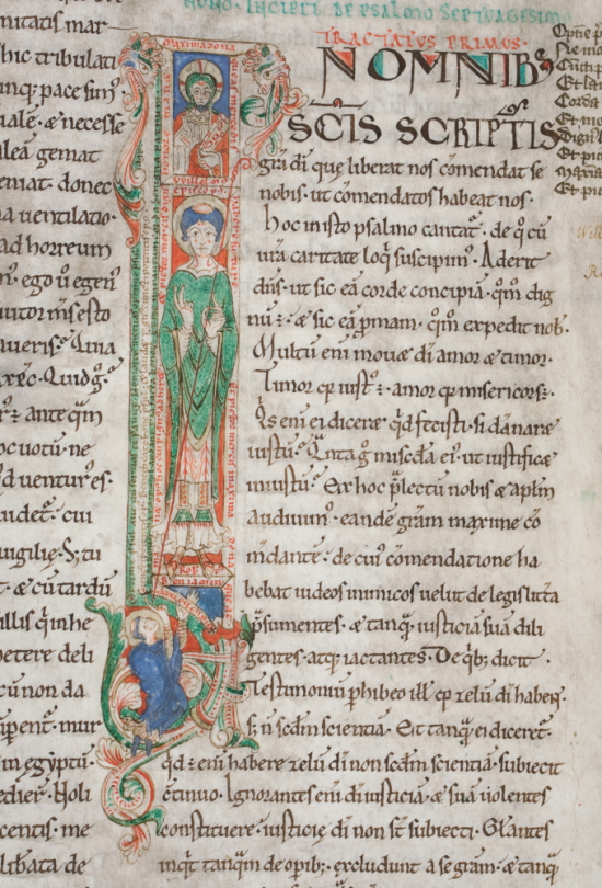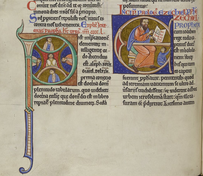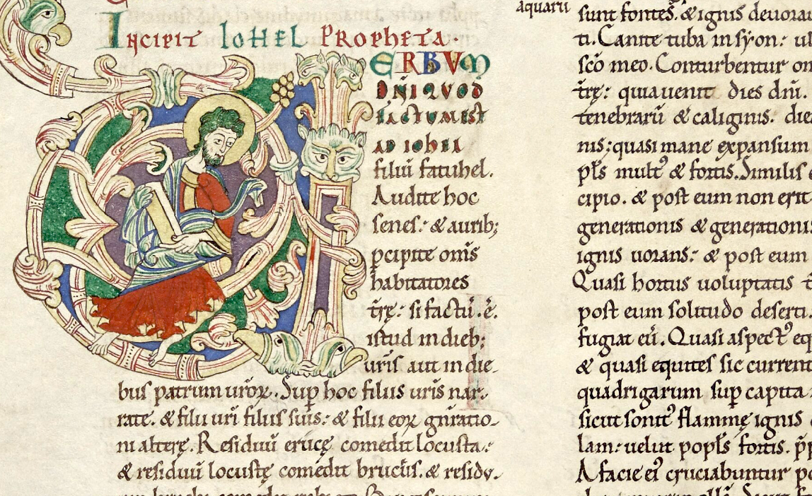 earliest illuminated Romanesque Bible with an English provenance. The knotwork has been replaced with a combination of Norman-influenced
