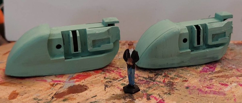 Since I had 2 clips, making a duplicate machine seemed reasonable, A little institutional green paint helps disguise their origins and gives better shadow lines.