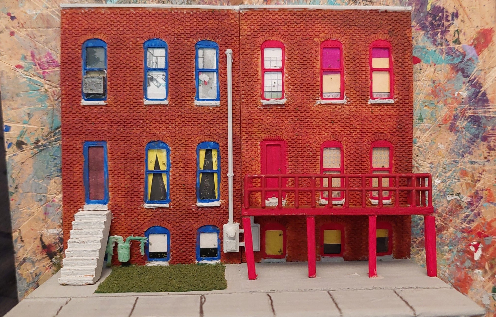 ![]() The brownstone backs were accidentally scaled slightly smaller than I intended, but they were not so small that I would simply toss them out. Paint, paper prints, some 3d printed gas and electric service details, and a few items from my scrap box for the deck. |