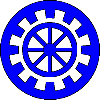Affiliation badge: Argent, a wheel, within a border embattled azure.